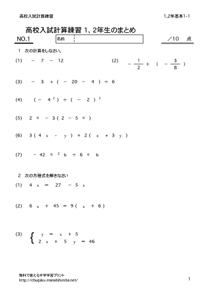 計算力は数学の基本です。文章題や図形の問題が思うように解けないとき、そちらばかりに目が向きがちですが、実は基本的な計算があやふやだったというケースはよくあります。自信がある場合でも、必ず計算練習をするようにしてください。